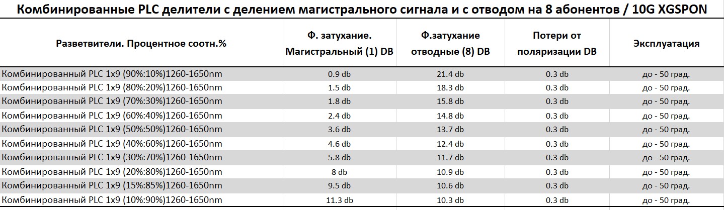 Делитель PLC 1x9 10G PON (XGS-PON), LGX-корпус, SC/APC объединяет в себе два каскада делителей, собранных на одном кристалле технологии PLC, и применяется в пассивных оптических сетях 10G PON (XGS-PON) и GPON.Первый каскад обеспечивает деление сигнала 1:2 с заданным коэффициентом деления. Второй каскад обеспечивает равноменрное деление сигнала 1:8 с одного из выходов делителя 1-го каскада.